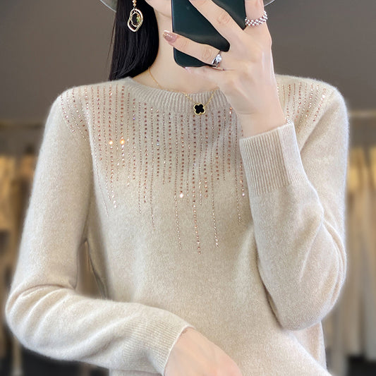【S-2XL】Γυναικείο βελούδινο μάλλινο πουλόβερ Andi με στρογγυλό λαιμό και πολύτιμους λίθους-4113177